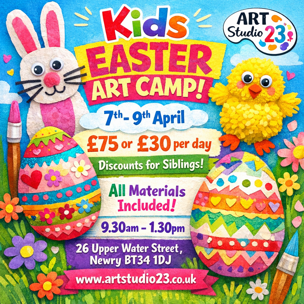 Join us at Art Studio 23 for a fun-filled 3-day Easter Art Camp where children will create adorable, hands-on Easter crafts and decorations to take home and treasure!